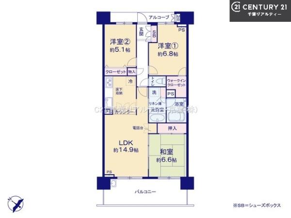 間取り | 3LDK (LDK14.9/和室6.6/洋室5.1/洋室6.8) |
