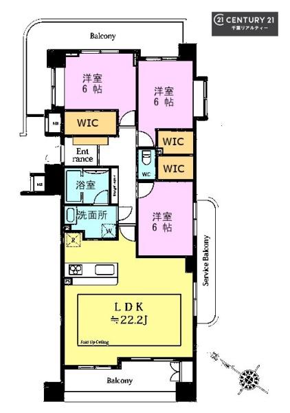 間取り | 3LDK (LDK22.2/洋室6.1/洋室6/洋室6) |