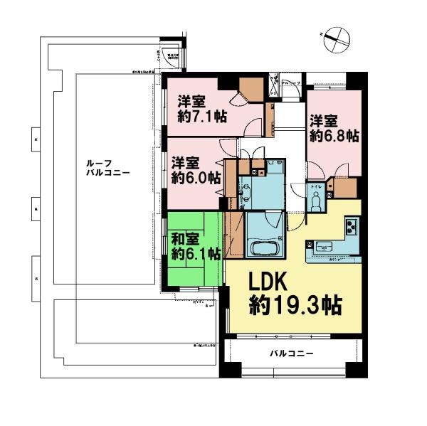| 間取り | 4LDK (LDK19.3/和室6.1/洋室7.1/洋室6.8/洋室6) | ||||
