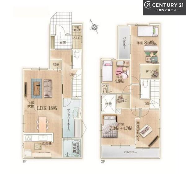 | 築年月 | 2025年10月築 | 間取り | 3LDK (LDK18/洋室12/洋室8.5/洋室4.8) | ||