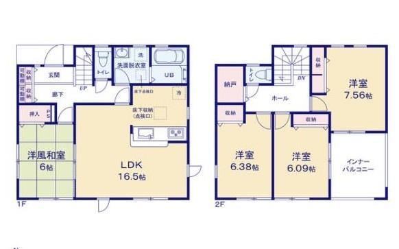築年月 2026年2月築 間取り 4SLDK (LDK16.5/和室6/洋室7.56/洋室6.38/洋室6.09)