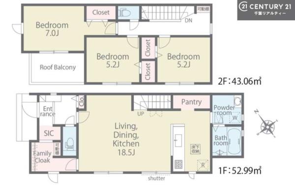 | 築年月 | 2026年1月築 | 間取り | 3LDK (LDK18.5/洋室7/洋室5.2/洋室5.2) | ||