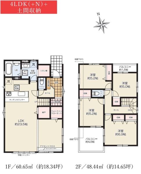 北側11m道路接道&並列3台駐車可!23.5帖LDKに全居室収納・土間・リネン庫も完備。生活施設も徒歩圏!