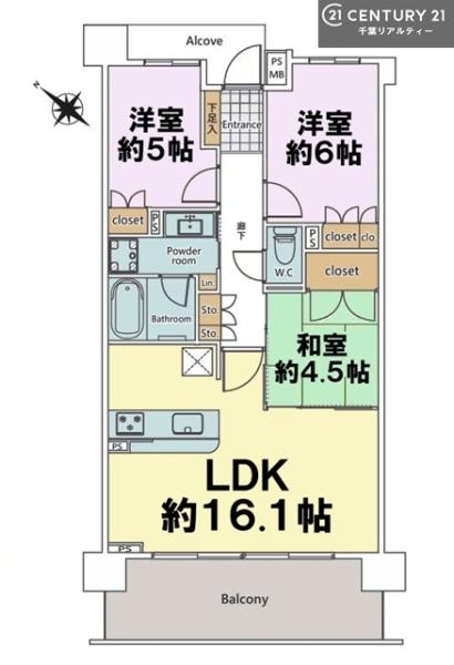 | 間取り | 3LDK (LDK16.1/和室4.5/洋室6/洋室5) | ||||