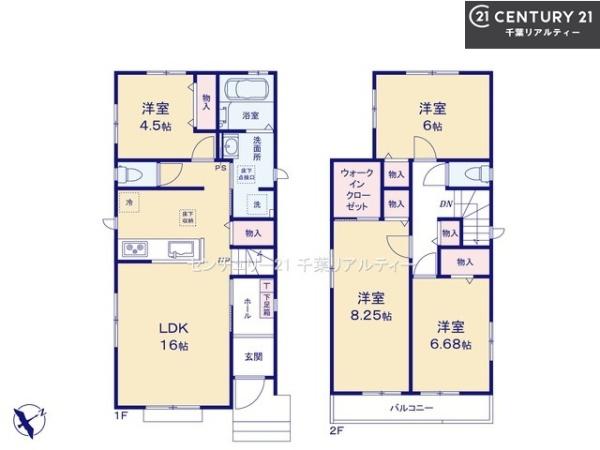 | 築年月 | 2025年11月築 | 間取り | 4LDK (LDK16/洋室4.5/洋室8.25/洋室6.68/洋室6) | ||