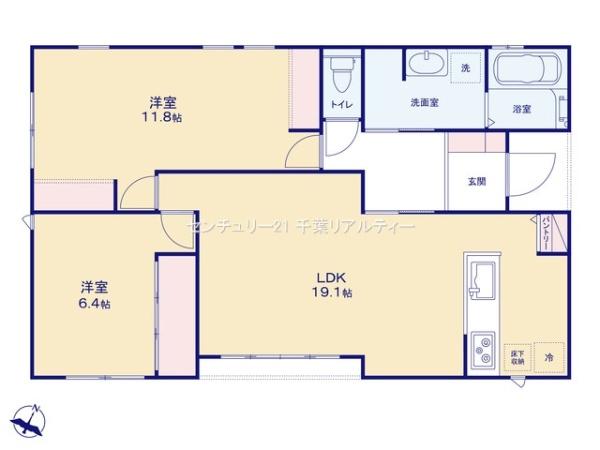 | 築年月 | 2025年4月築 | 間取り | 2LDK (LDK19.1/洋室11.8/洋室6.4) | ||