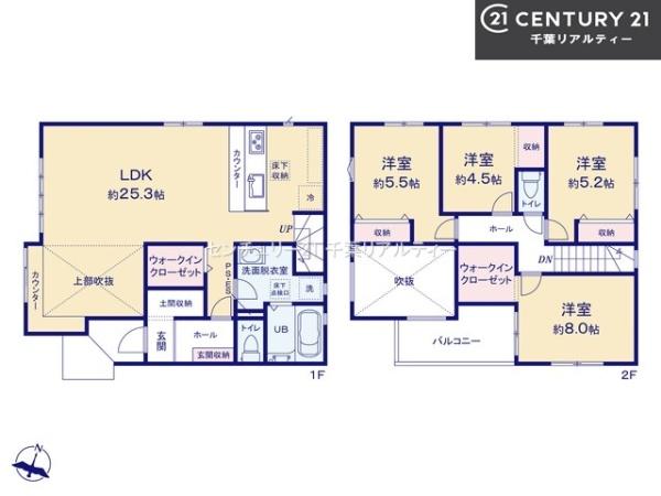 | 築年月 | 2025年10月築 | 間取り | 4LDK (LDK25.3/洋室8/洋室5.5/洋室5.2/洋室4.5) | ||