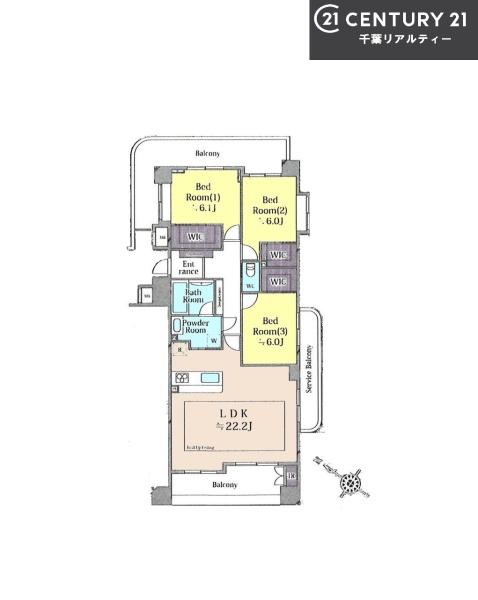 間取り 3LDK (LDK22.2/洋室6/洋室6/洋室6.1)