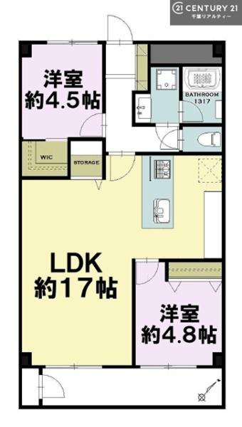 | 間取り | 2LDK (LDK17/洋室4.8/洋室4.5) | ||||