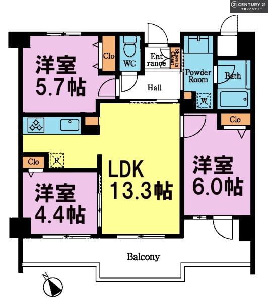 間取り 3LDK (LDK13.3/洋室6/洋室5.7/洋室4.4)