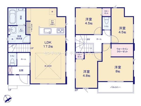 | 築年月 | 2025年8月築 | 間取り | 4LDK (LDK17.2/洋室8/洋室4.8/洋室4.5/洋室4.5) | ||