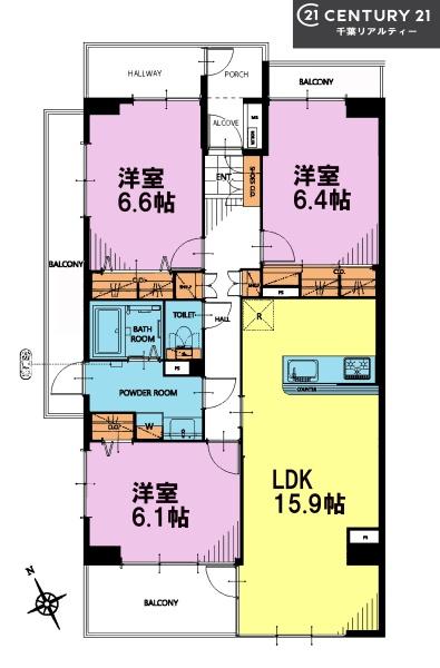 | 間取り | 3LDK (LDK15.9/洋室6.6/洋室6.4/洋室6.1) | ||||