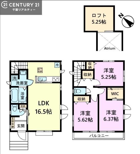 WIC・ロフト付きで収納充実!