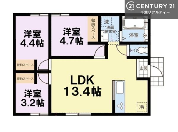 | 築年月 | 2025年9月築 | 間取り | 3LDK (LDK13.4/洋室4.4/洋室3.2) | ||