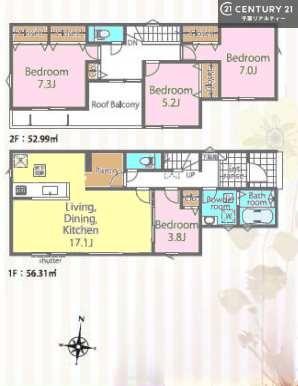 築年月 2026年2月築 間取り 4LDK (LDK17.1/洋室3.8/洋室7.3/洋室7/洋室5.2)
