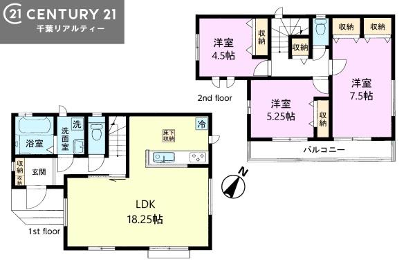 | 築年月 | 2026年6月築 | 間取り | 3LDK (LDK18.25/洋室7.5/洋室5.25/洋室4.5) | ||