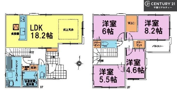 | 築年月 | 2025年12月築 | 間取り | 4LDK (LDK18.2/洋室8.2/洋室6/洋室5.5/洋室4.6) | ||