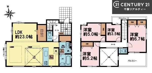 | 築年月 | 2025年12月築 | 間取り | 4LDK (LDK23/洋室6.7/洋室5.2/洋室5/洋室3.5) | ||