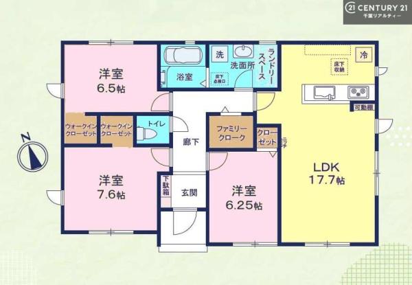 | 築年月 | 2025年11月築 | 間取り | 3LDK (LDK17.7/洋室7.6/洋室6.5/洋室6.25) | ||