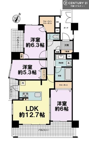 | 間取り | 3LDK (LDK12.7/洋室6.3/洋室6/洋室5.3) | ||||