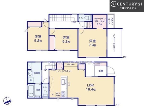 | 築年月 | 2025年6月築 | 間取り | 3LDK (LDK19.4/洋室7.9/洋室5.2/洋室5.2) | ||