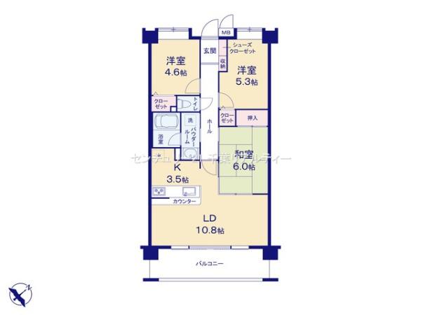 | 間取り | 3LDK (LD10.8/K3.5/洋室5.3/洋室4.6/和室6) | ||||