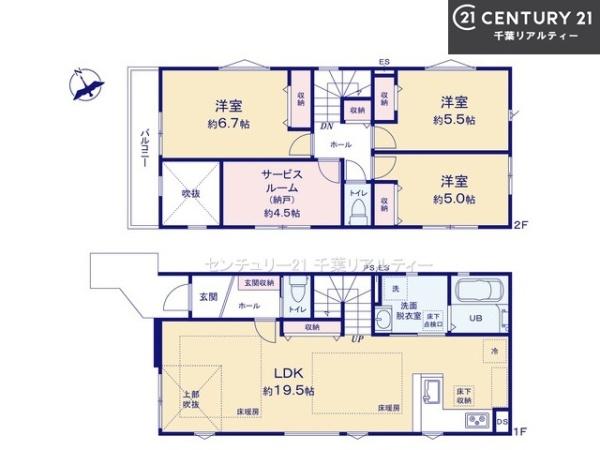 | 築年月 | 2026年3月築 | 間取り | 3SLDK (LDK19.5/洋室6.7/洋室5.5/洋室5/S4.5) | ||
