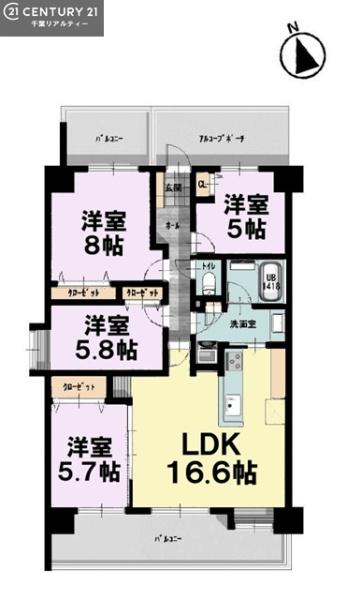 | 間取り | 4LDK (LDK16.6/洋室8/洋室5.8/洋室5.7/洋室5) | ||||