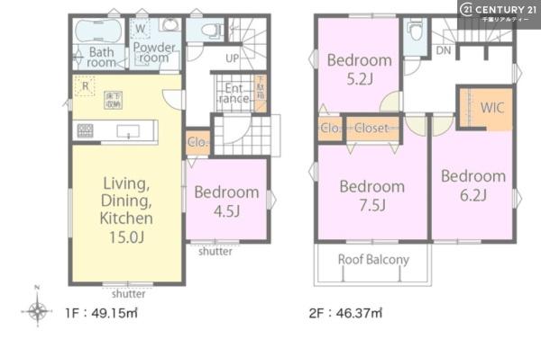 築年月 2026年2月築 間取り 4LDK (LDK15/洋室4.5/洋室7.5/洋室6.2/洋室5.2)