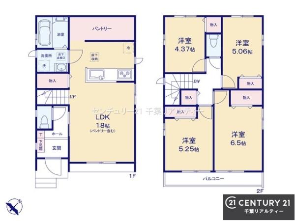 | 築年月 | 2025年12月築 | 間取り | 4LDK (LDK18/洋室6.5/洋室5.25/洋室5.06/洋室4.37) | ||