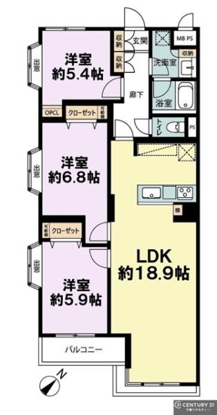 | 間取り | 3LDK (LDK18.9/洋室6.8/洋室5.9/洋室5.4) | ||||