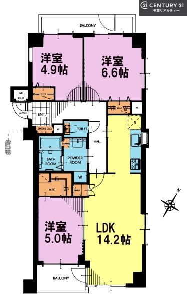 | 間取り | 3LDK (LDK14.2/洋室6.6/洋室5/洋室4.9) | ||||