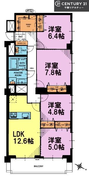 | 間取り | 4LDK (LDK12.6/洋室7.8/洋室6.4/洋室5/洋室4.8) | ||||