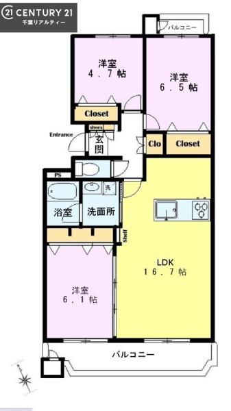 | 間取り | 3LDK (LDK16.7/洋室6.5/洋室6.1/洋室4.7) | ||||