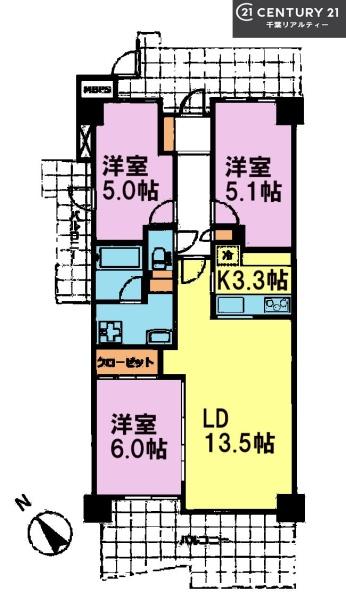 | 間取り | 3LDK (LD13.5/K3.3/洋室6/洋室5.1/洋室5) | ||||
