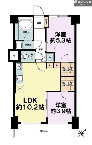 | 間取り | 2LDK (LDK10.2/洋室5.3/洋室3.9) | ||||