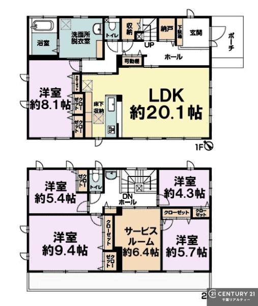 築年月 2007年11月築 間取り 5SLDK (LDK20.1/洋室8.1/洋室9.4/洋室5.7/洋室5.4/洋室4.3/S6.4)