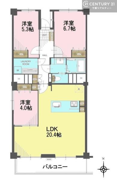 | 間取り | 3LDK (LDK20.4/洋室6.7/洋室5.3/洋室4) | ||||