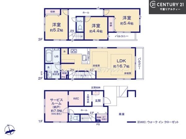 | 築年月 | 2025年11月築 | 間取り | 3SLDK (S7.9/LDK16.7/洋室5.4/洋室5.2/洋室4.4) | ||