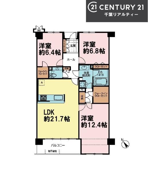 | 間取り | 3LDK (LDK21.7/洋室12.4/洋室6.8/洋室6.4) | ||||