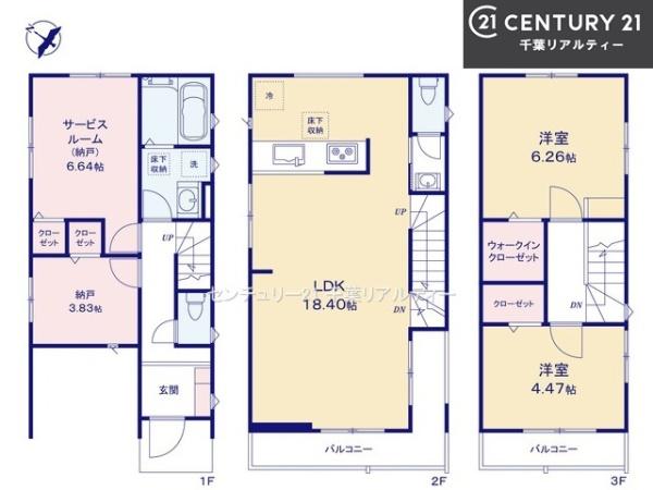 | 築年月 | 2025年11月築 | 間取り | 2SLDK (S6.64/S3.83/LDK18.4/洋室6.26/洋室4.47) | ||