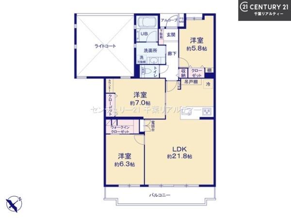| 間取り | 3LDK (LDK21.8/洋室7/洋室6.3/洋室5.8) | ||||