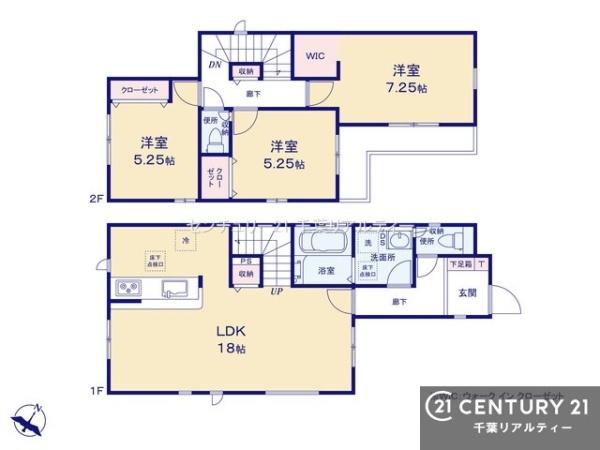 | 築年月 | 2025年11月築 | 間取り | 3LDK (LDK18/洋室7.25/洋室5.25/洋室5.25) | ||